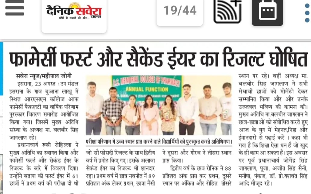 On the beginning first step was taken toward building up a chain of great institutions with the opening of R.S Memorial College of Pharmacy. Moreover our college is affilated from Haryana State Board of Technical Education, Panchkula. who always wanted to give the best to those who had a vision but no shape, money but no counseling, desire to learn but no guidance and synonym of quality of education.